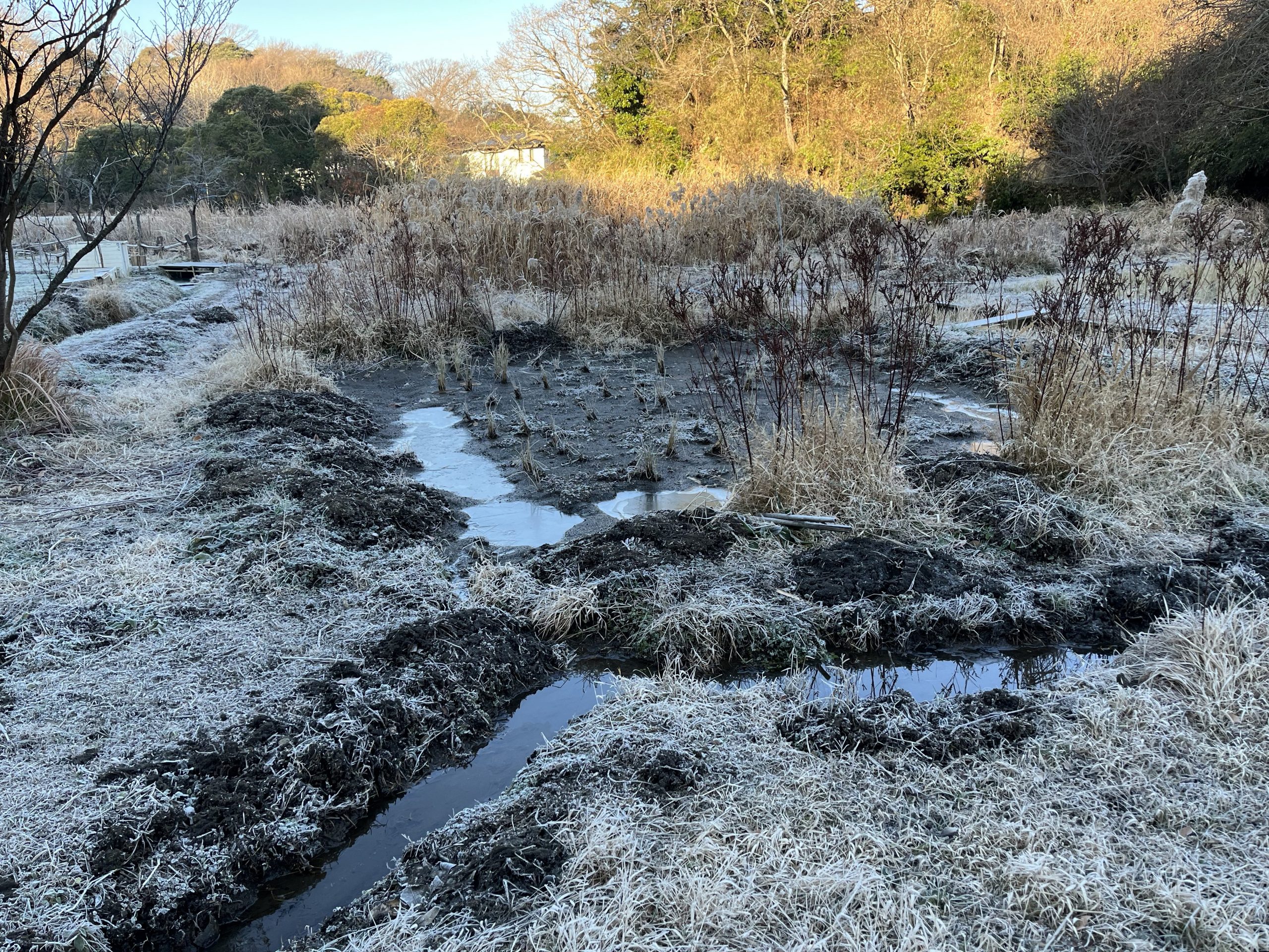霜と氷に覆われた田んぼ